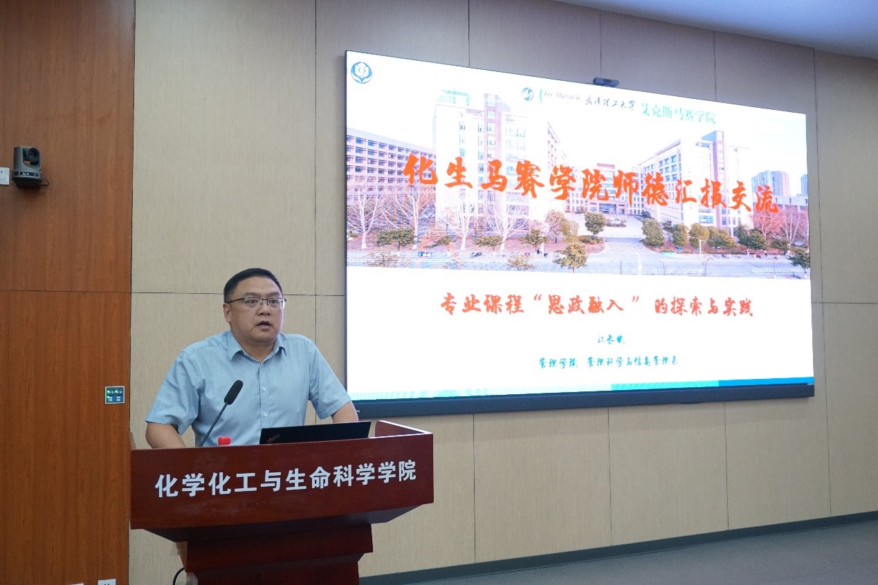 2023年11月2日下午,鸭王 、马赛鸭王 在化生大楼一楼报告厅举行师德讲坛,邀请管理鸭王 江长斌老师作主题报告,鸭王 全体教职工参加了报告会。会议由鸭王 党委书记韩同远主持。
