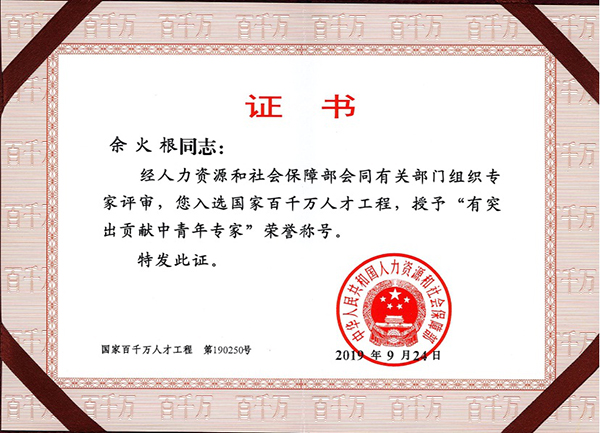 余火根教授入选,荣获“有突出贡献中青年专家”称号,学校“国家百千万人才工程”人选人数增至12人。