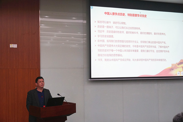 郭国祥教授为与会师生作《不忘初心 牢记使命—中国共产党百年辉煌历史》专题辅导报告。郭教授从党的全国代表大会历程讲起,分析了历次党代会召开的背景、时间、地点、党的领袖人物、会议主要内容、意义等方面, 通过一个个鲜活的故事,为我们再现了中国共产党的百年奋斗与百年辉煌历史,揭示了中国共产党逐步走向成熟、走向民主、走向现代,向一个成熟的执政党转型的伟大征程。