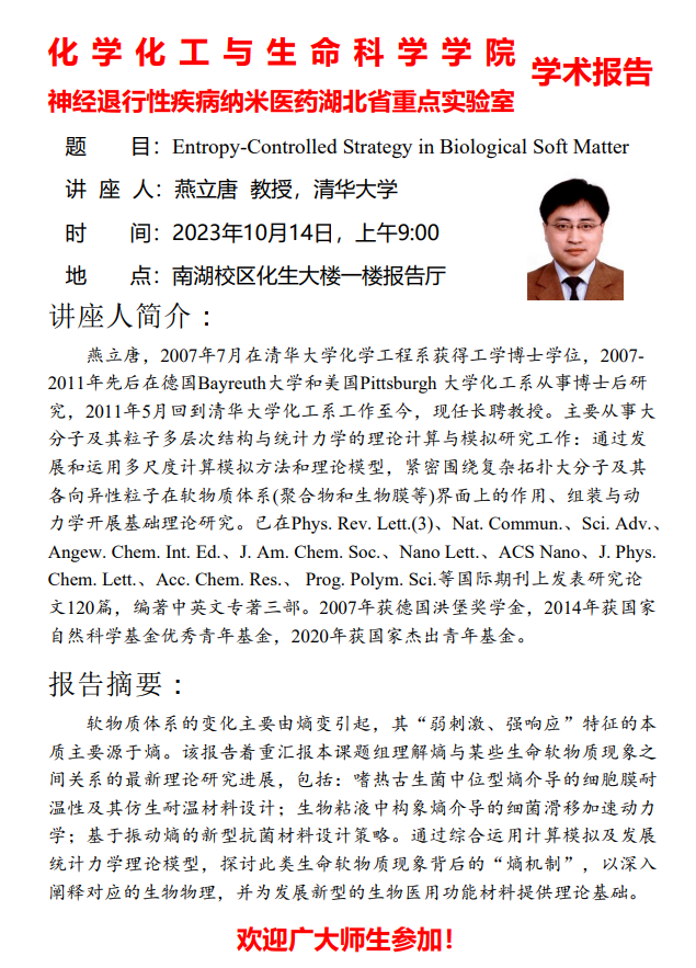 【鸭王 ·学术报告】Entropy-Controlled Strategy in Biological Soft Matter