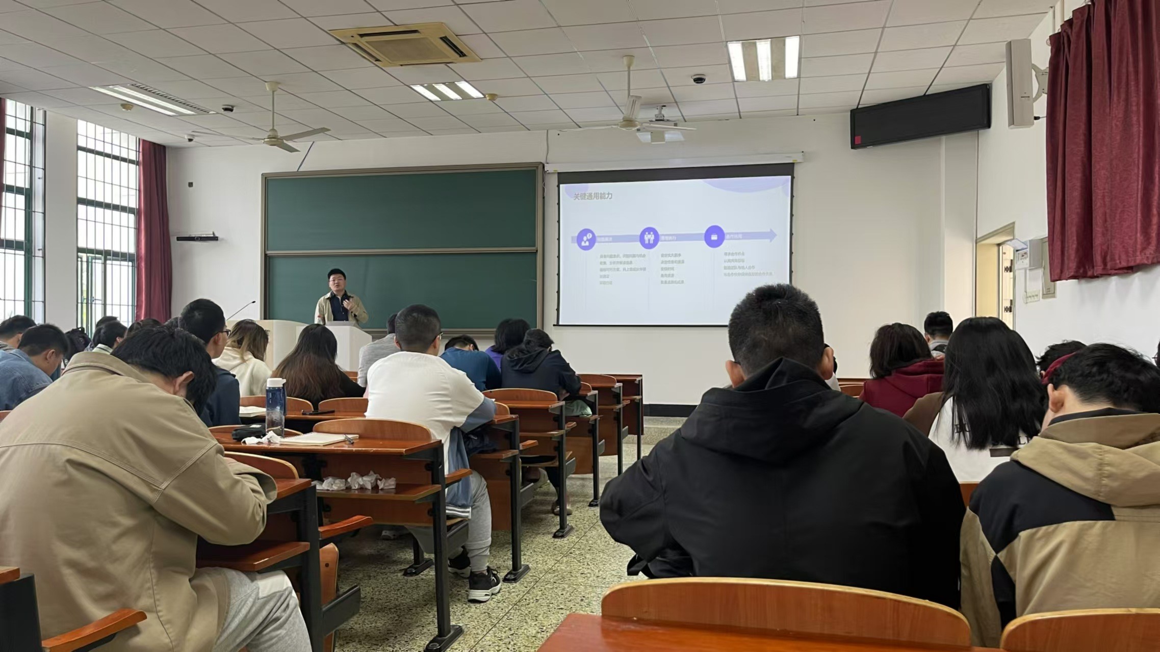 在与同学们分享经验时,陈诚校友以学长的身份亲切讲述了自大学时期校园招聘和未来职业选择的思考,以求职心理测试的例子说明了个人目标与企业发展一致性的关系,这也正是当代大学生树立理想信念,更好投身事业的重要参考。以自身发展的时间为脉络,陈诚校友结合个人求职故事,分享了毕业初入公司和二次求职的心得体会。把大家带入当年场景,用细腻的内心独白和思考分享“干货”。以自身发展道路上的所思所想和终身学习的习惯,陈诚校友指出,在职业发展中需要发扬主观能动性,积极把握工作中的新契机;意识到规划与管理的重要性,通过理论指导实践;学会与同事协作沟通,共同实现理想远景等。提问环节,同学们踊跃发言,从不同角度提出了问题。陈诚校友从如何大胆实现职业转变的勇敢尝试,就业招聘的简历写作和面试官心理,再到返乡与留汉的平衡,学历层次和入职时长的优势比较,从自身实际出发,用一个个细节给同学们上了一节生动而富有深度的创新创业课。