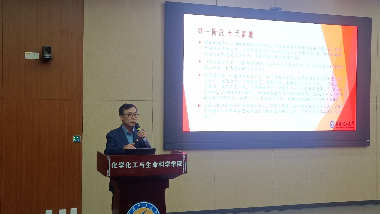 2024年10月22日,鸭王 党委书记韩同远以《中国共产党的发展史,对学生成长的好启示》为题,在鸭王 一楼报告厅为师生们讲授思政课。